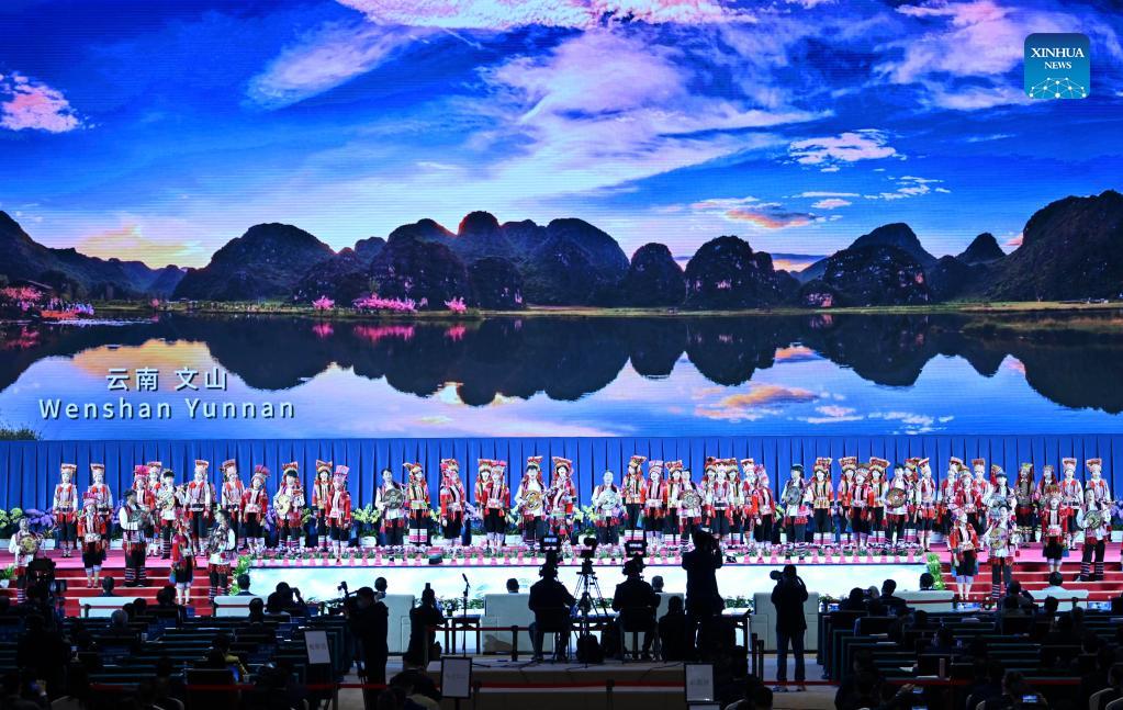 A performance is held at the opening ceremony of the Ecological Civilization Forum of the first part of the 15th meeting of the Conference of the Parties to the Convention on Biological Diversity (COP15) in Kunming, southwest China's Yunnan Province, on Oct. 14, 2021. (Xinhua/Chen Yehua)