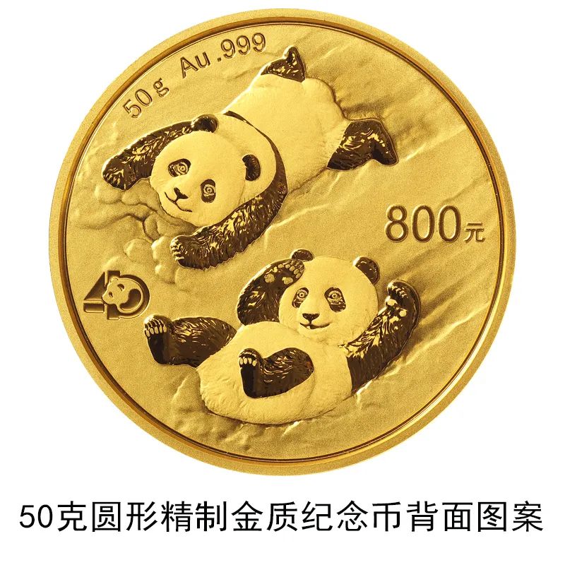 This photo shows the reverse side of a 50-gram panda commemorative gold coin. It has a face value of 800 yuan ($124.3). A maximum of 30,000 will be issued. (Photo/pbc.gov.cn)