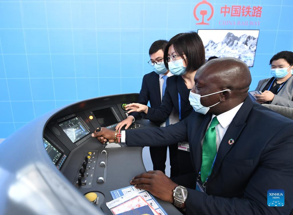 Visitors are seen at the venue of the Second United Nations Global Sustainable Transport Conference in Beijing, capital of China, Oct. 14, 2021. The Second United Nations Global Sustainable Transport Conference kicked off on Thursday in Beijing. The three-day conference will be held both online and offline. (Xinhua/Li He)