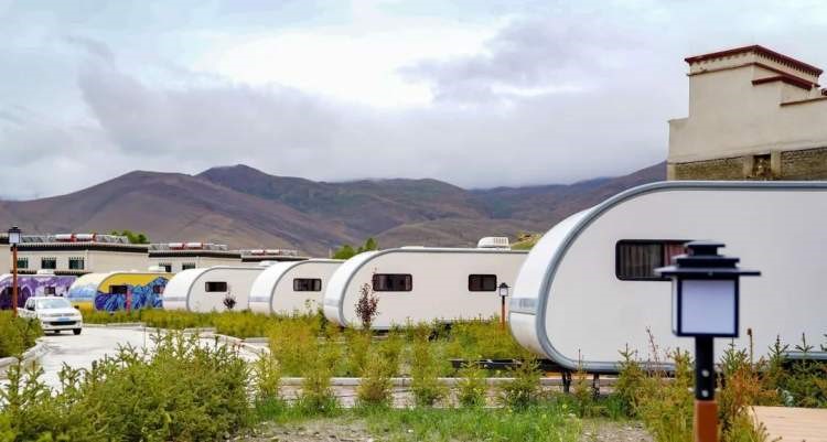 Photo shows residential facility at “Qomolangma town”, a special tourism service area built at the foot of Mount Qomolangma in Shigatse city, southwest China’s Tibet autonomous region. (Photo/Official WeChat account of the information office of the government of Songjiang district, Shanghai)