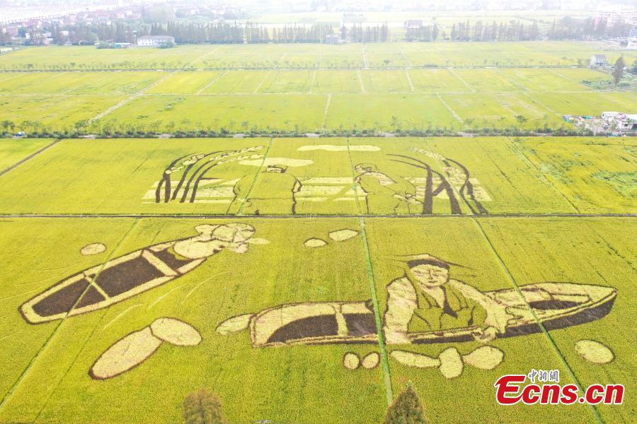 This photo taken on Oct. 14, 2021, shows rice paddy field paintings in Hangzhou, Zhejiang Province. (Photo: China News Service/Wang Gang)
