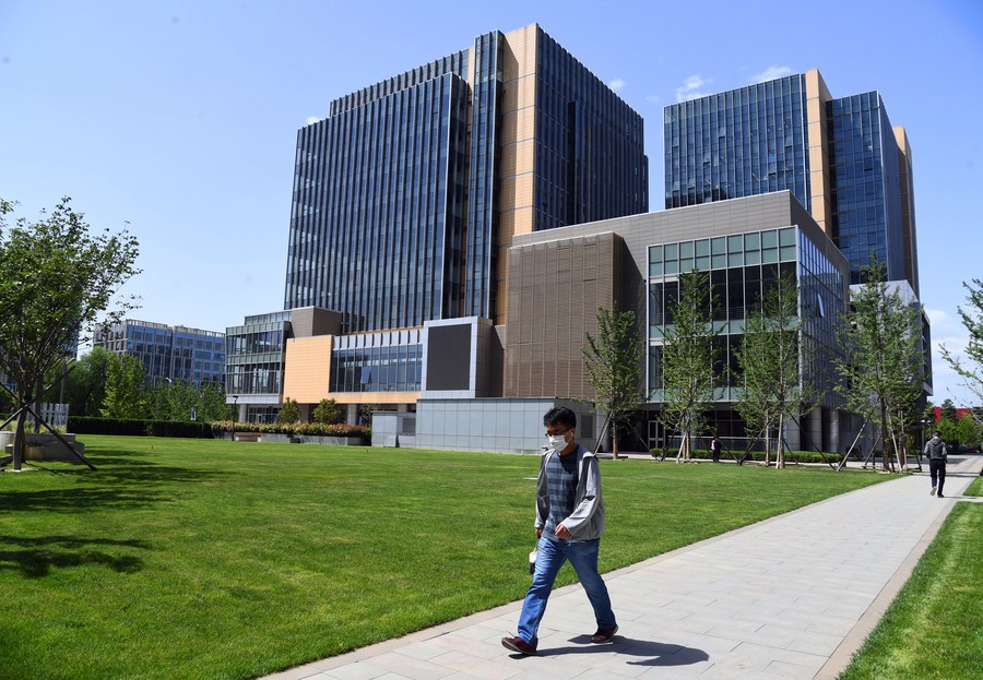 A man walks at Zhongguancun Science City in Beijing, capital of China, May 18, 2020. (Xinhua/Ren Chao)