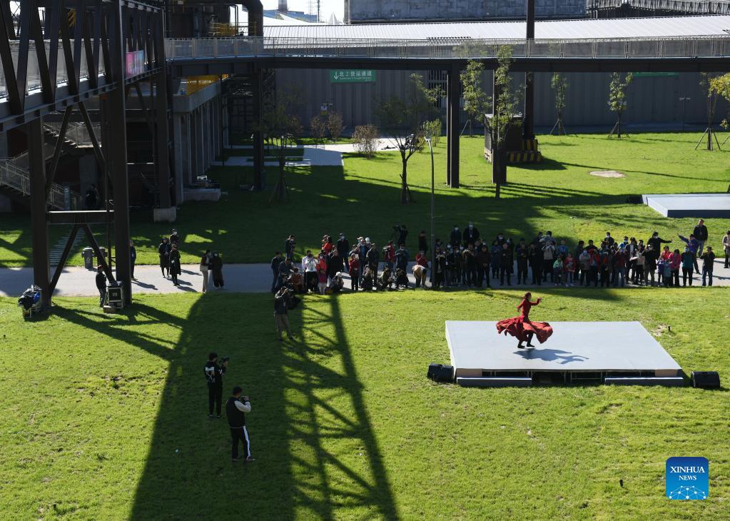 A dancer performs at Shougang Park in Beijing, capital of China, Oct. 17, 2021. A dance show is held at Shougang Park, a steel mill-turned cultural and sports complex, on Sunday. (Xinhua/Jin Liangkuai)