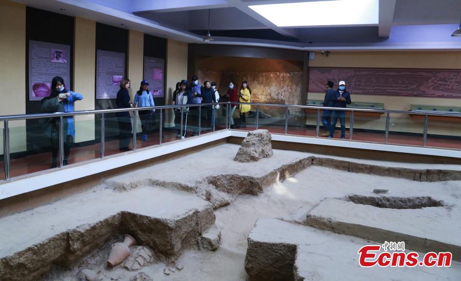 People visit the Lajia Ruins Museum, Minhe County, northwest China's Qinghai on Oct. 17. Lajia Ruins, dubbed "Pompeii of China," was formed by an earthquake and flood dating back 4,000 years. The Lajia site is the largest disaster excavation site found in China so far. (Photo: China News Service/ Ma Mingyan)
