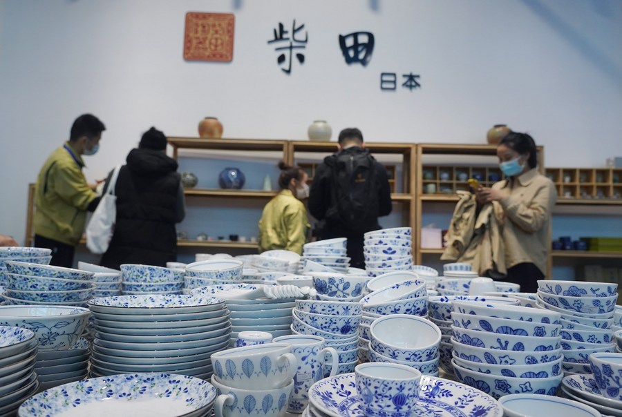 Visitors view exhibits from Japan at the 2021 China Jingdezhen International Ceramic Fair in Jingdezhen, east China's Jiangxi Province, Oct. 18, 2021. (Xinhua/Wan Xiang)