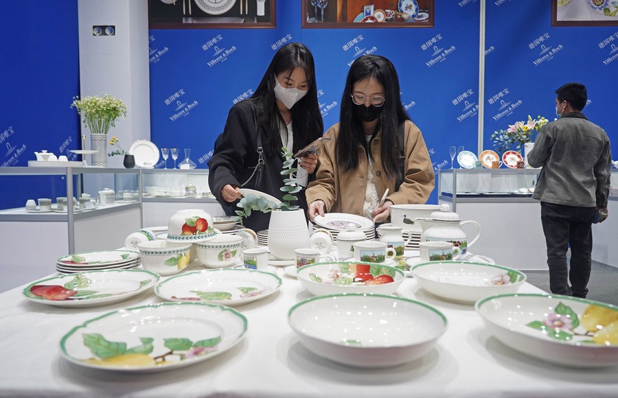 Visitors view exhibits from Germany at the 2021 China Jingdezhen International Ceramic Fair in Jingdezhen, east China's Jiangxi Province, Oct. 18, 2021. (Xinhua/Wan Xiang)