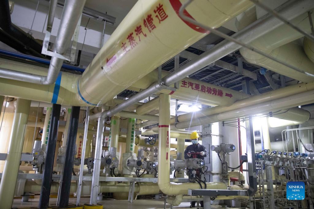 A staff member works at Harbin Chenneng biomass power plant in Harbin, northeast China's Heilongjiang Province, Oct. 18, 2021. Biomass power plants in Heilongjiang Province convert agricultural waste into biomass energy, which boosts sustainable, green agricultural development. (Xinhua/Zhang Tao)