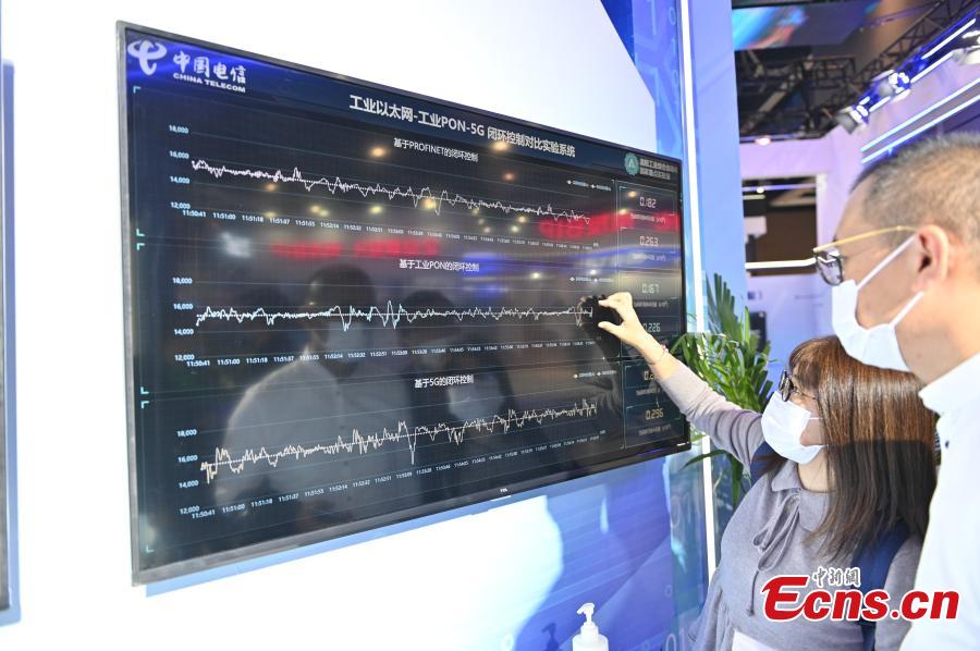 Visitors visit the innovation achievements exhibition of the 2021 Global Industrial Internet Conference, Oct. 18, 2021. (Photo: China News Service/Yu Haiyang)