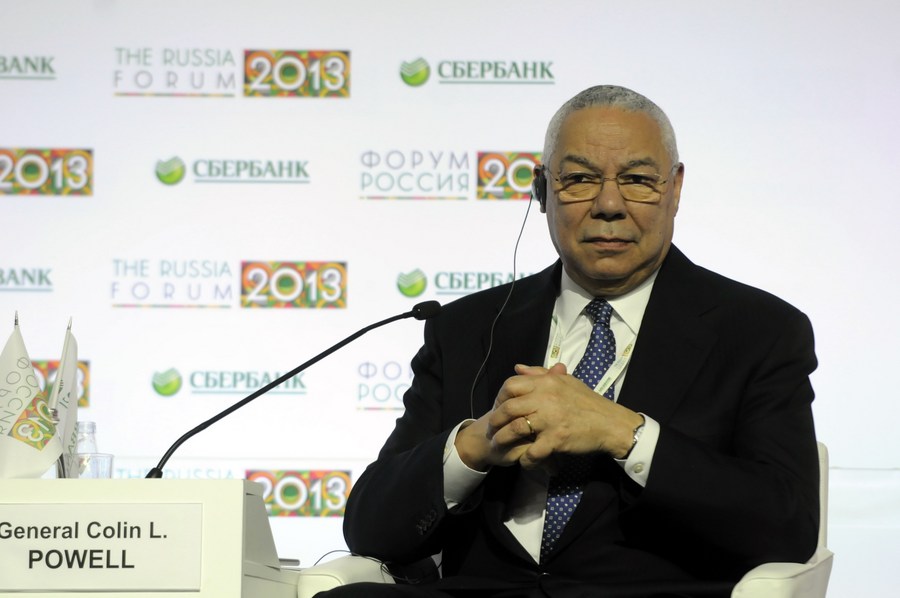 Former U.S. Secretary of State Colin Powell attends the Russia Forum 2013 in Moscow, Russia, April 18, 2013. (Xinhua/Liu Hongxia)