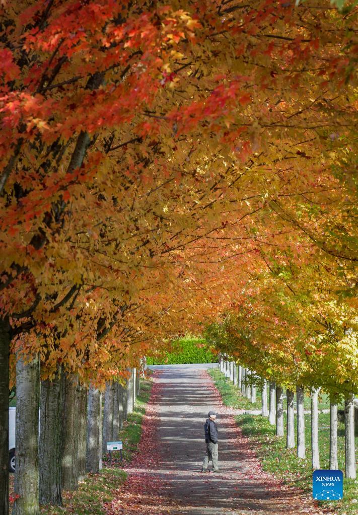 Photo taken on Oct. 19, 2021 shows the fall foliage in Vancouver, British Columbia, Canada. (Photo by Liang Sen/Xinhua)