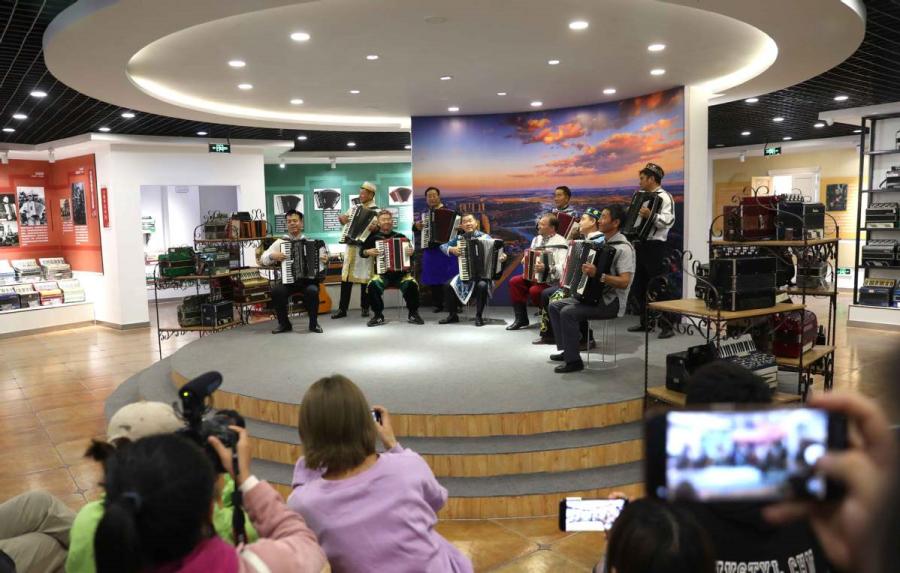 An accordion team composed of people from different minority groups performs in Ili Kazak autonomous prefecture, Xinjiang Uygur autonomous region on Sept 28, 2021. (Photo: chinadaily.com.cn/Zou Hong)