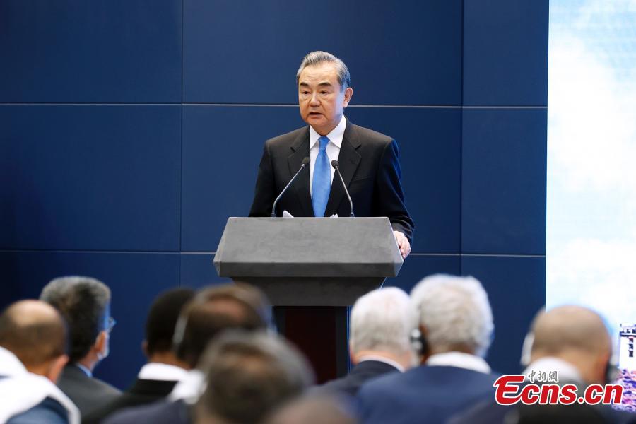 Chinese State Councilor and Foreign Minister Wang Yi delivers a speech at a foreign ministry event to introduce the Tibet Autonomous Region to the world in Beijing, Oct. 20, 2021. (Photo: China News Service/Han Haidan)
