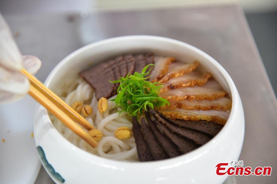 Photo taken on Oct. 20, 2021 shows the rice noodles cooked by competitors, Liuzhou City, Guangxi Zhuang Autonomous Region. (Photo: China News Service/Wang Yizhao)