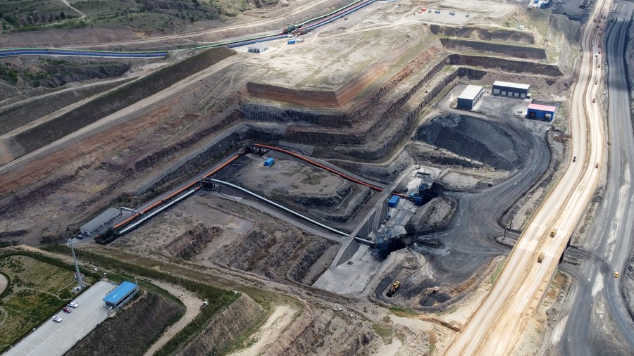 Aerial photo taken on May 26, 2021 shows an opencast coal mine in Erdos, north China's Inner Mongolia Autonomous Region. (Xinhua/He Shuchen)