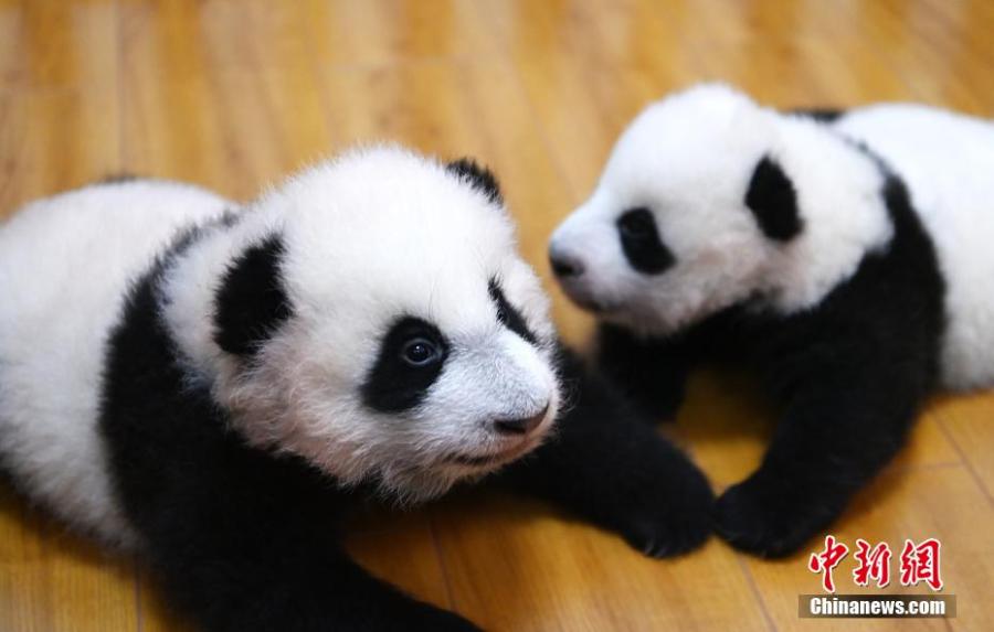 Photo taken on Oct. 20, 2021 shows two panda cubs at Shenshuping base of China Conservation and Research Center for the Giant Panda, Wolong National Nature Reserve, Sichuan Province. (Photo: China News Service/An Yuan)