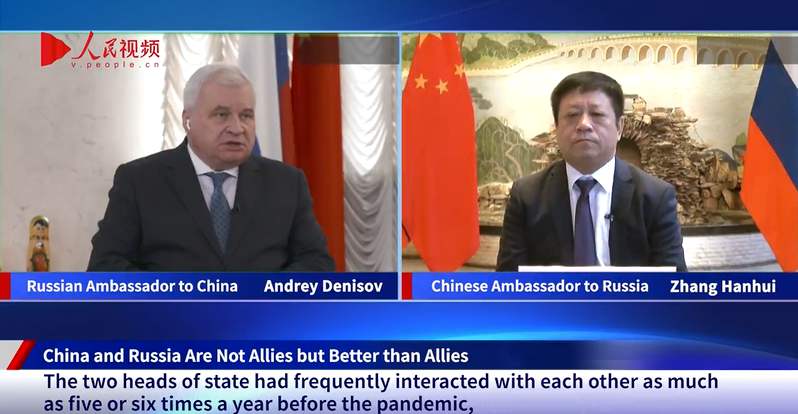 Chinese Ambassador to Russia Zhang Hanhui and Russian Ambassador to China Andrey Ivanovich Denisov joined the first episode of "Online Talks between Chinese and Foreign Ambassadors" jointly launched by Huanqiu.com and the China Public Diplomacy Association in collaboration with Yangtze River News, and held a series of online talks focusing on issues such as diplomacy between the heads of state of China and Russia, international cooperation in the fight against COVID-19, cooperation under the UN framework, and the future development direction of China-Russian relations.