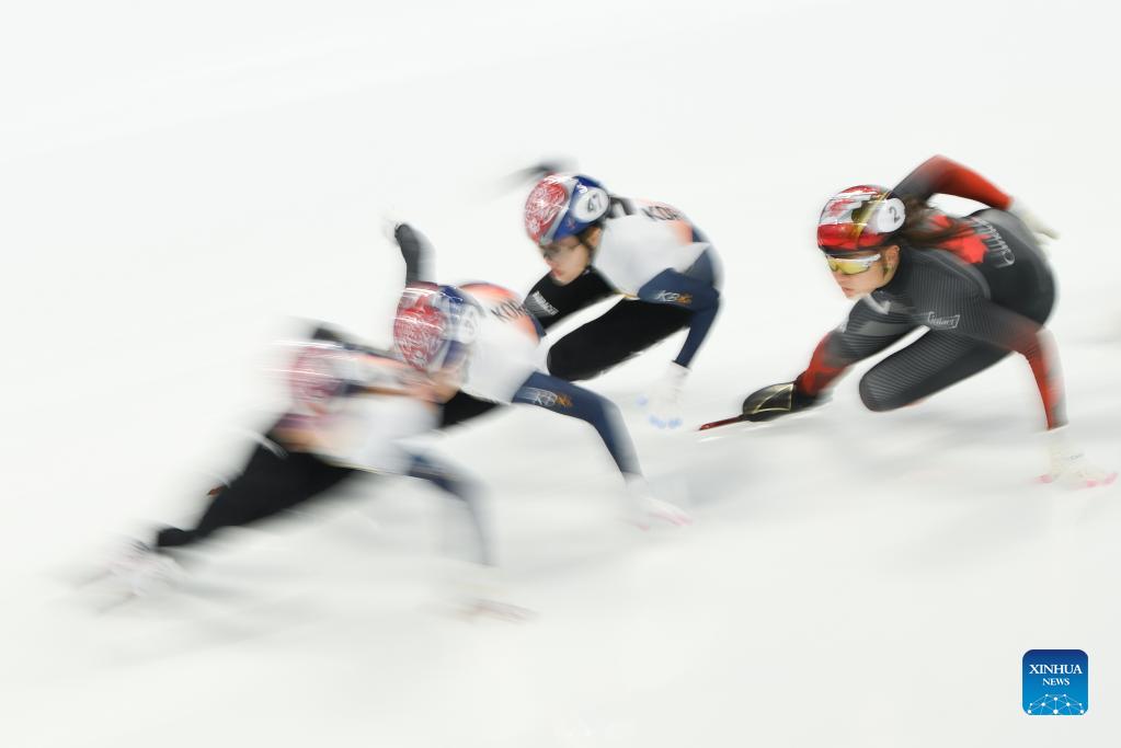 Lee Yubin (2nd R) of South Korea competes during the women's 1500m final at ISU World Cup Short Track 2021/2022 in Beijing, capital of China, on Oct. 23, 2021. (Xinhua/Ju Huanzong)