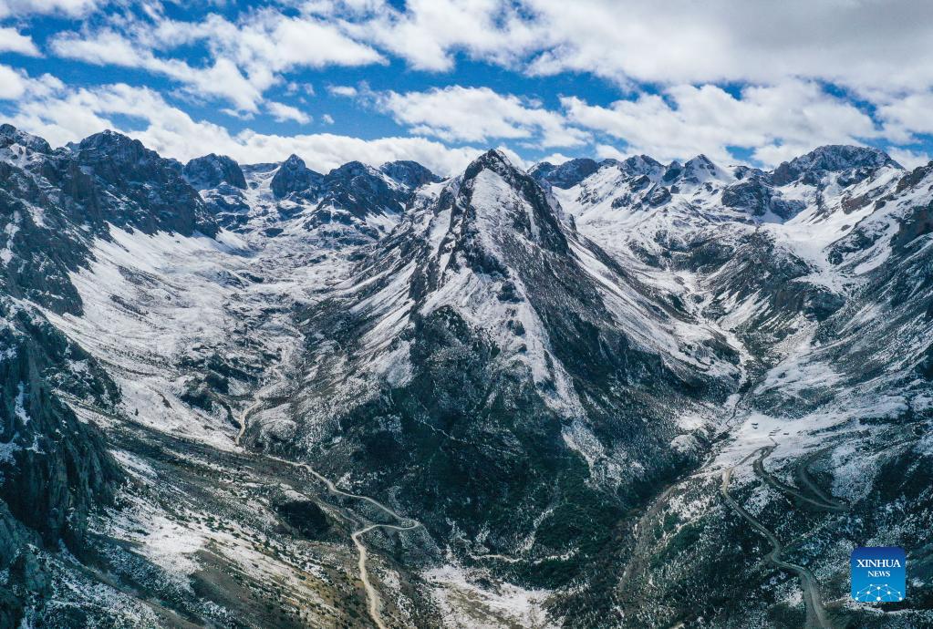 Aerial photo taken on Oct. 23, 2021 shows the scenery of Babagou scenic spot in Baiyu County, Ganzi Tibetan Autonomous Prefecture, southwest China's Sichuan Province. (Xinhua/Wang Xi)