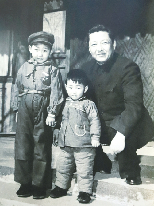 Five-year-old Xi Jinping (left), younger brother Xi Yuanping and father Xi Zhongxun in 1958.