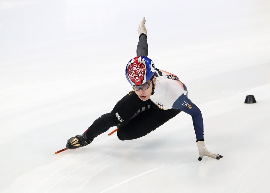 Hwang Dae-heon of South Korea in action during the men's 1,000m final A. (Xinhua/Cao Can)