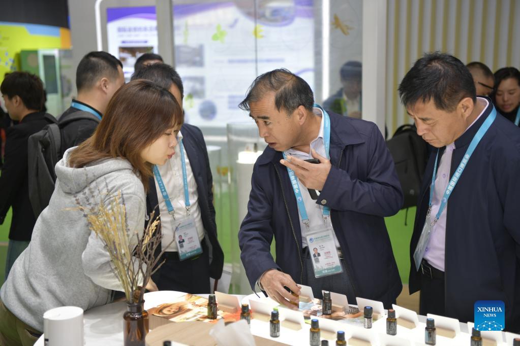 File photo shows visitors learning about products displayed at the booth of essential oil brand doTERRA at the 2nd China International Import Expo (CIIE) in east China's Shanghai. The U.S. essential oil brand doTERRA, a three time participant in the China International Import Expo (CIIE) since 2018, is growing rapidly in China market after its appearance in the CIIE as its launch pad. Boasting a workforce of more than 200 employees, doTERRA is running a factory, a laboratory, and a flagship shop in Shanghai, and its products have attracted a good number of loyal consumers across the country. (Xinhua)