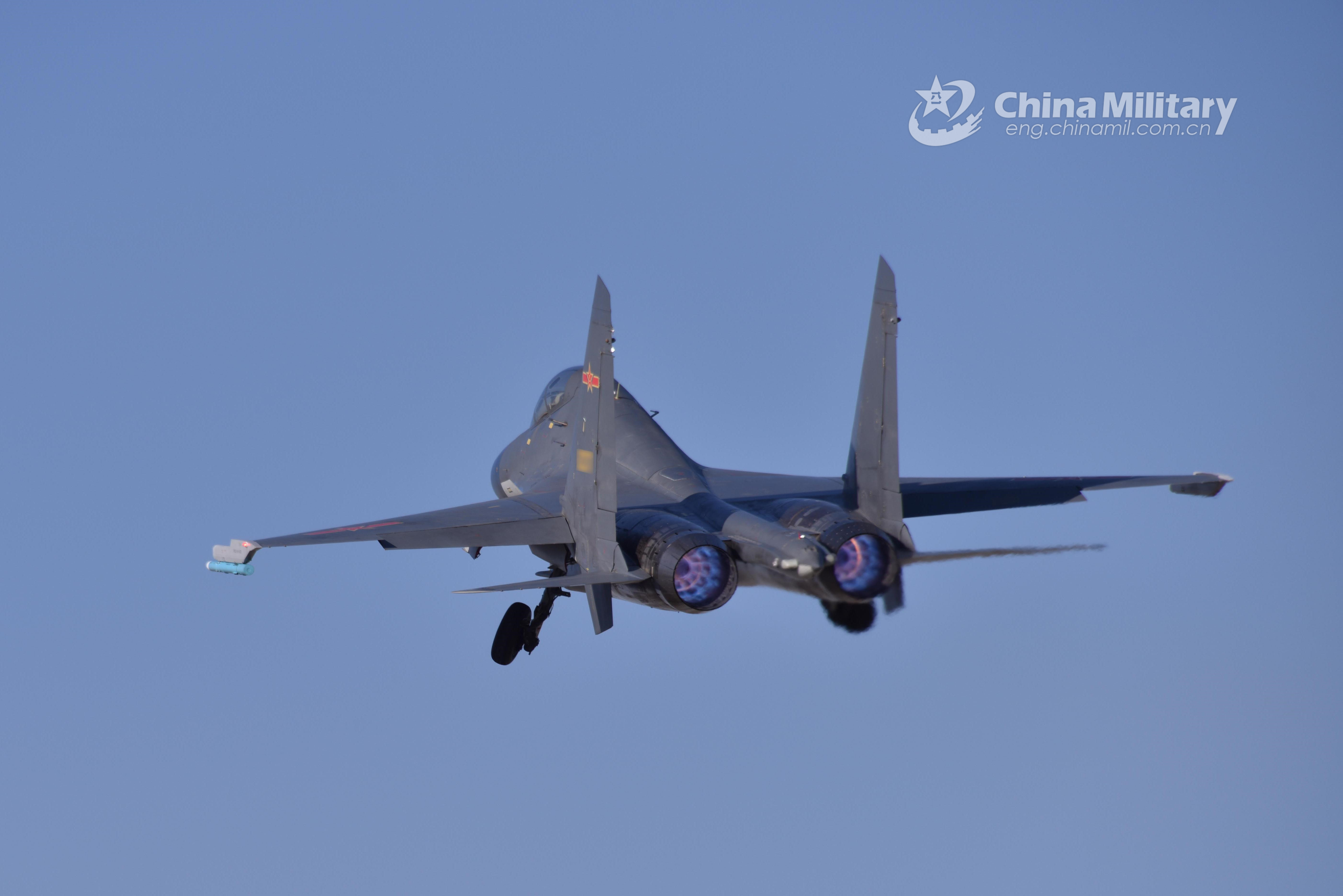 A fighter jet attached to an aviation brigade of the air force under the PLA Western Theater Command takes off for a flight training exercise on October 10, 2021. (eng.chinamil.com.cn/Photo by Zhao Dian)