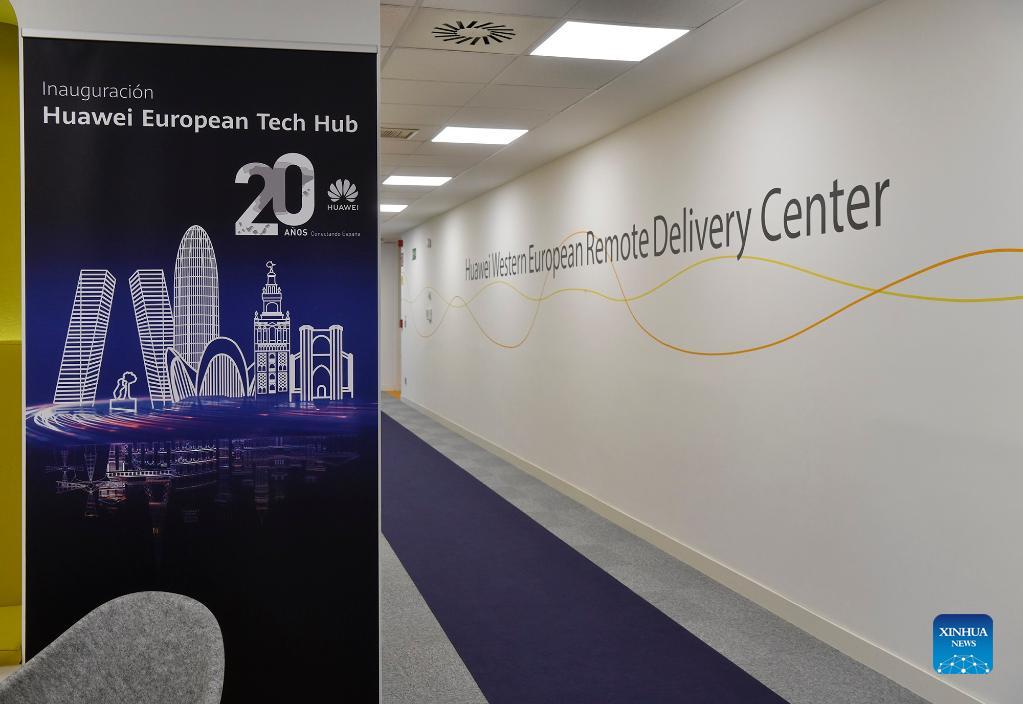 Photo taken on Oct. 27, 2021 shows a view of Huawei European Tech Hub in Madrid, Spain. The Chinese multinational telecommunications company Huawei inaugurated its new European technology support and service center in Madrid on Wednesday, with which it will provide technical support for the main telecommunication partners in ten European countries. (Str/Xinhua)