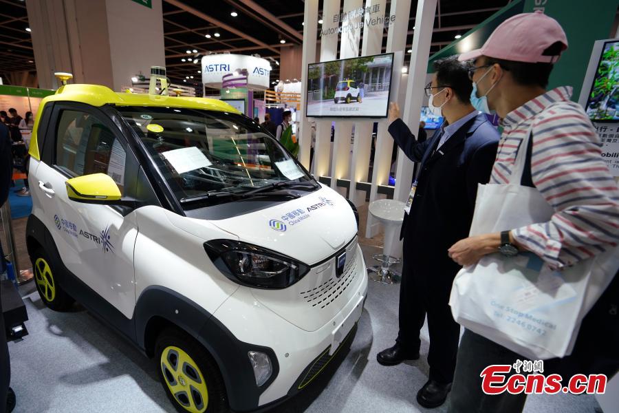 An exhibitor introduces the autonomous driving technology project at the International ICT Expo, Hong Kong, Oct.27, 2021. (Photo: China News Service/Zhang Wei)