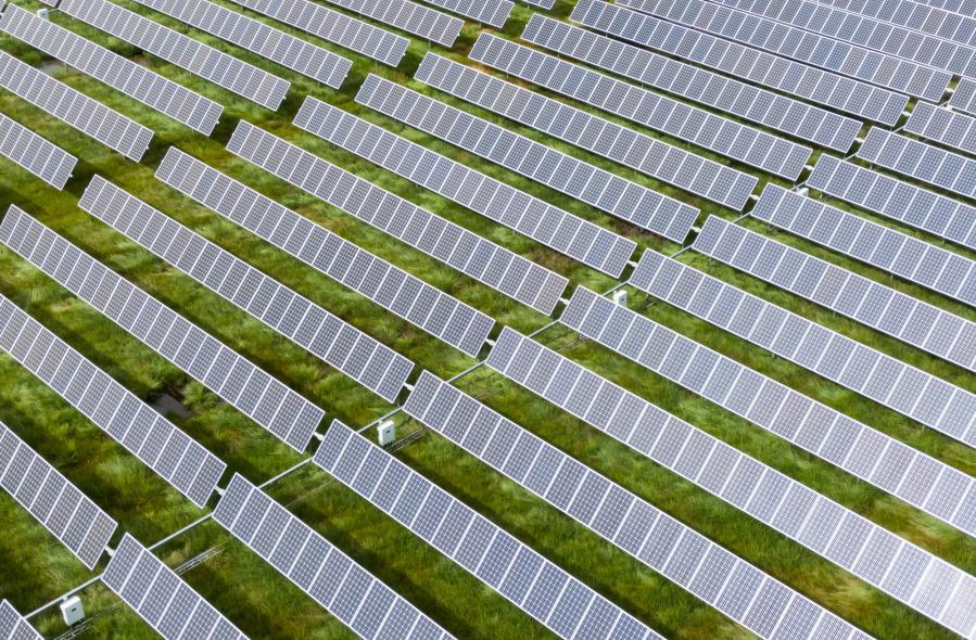 Aerial photo taken on Aug. 14, 2021 shows a photovoltaic power station at Masa Village, Hongyuan County of Aba Tibetan and Qiang Autonomous Prefecture, southwest China's Sichuan Province. (Xinhua/Jiang Hongjing)