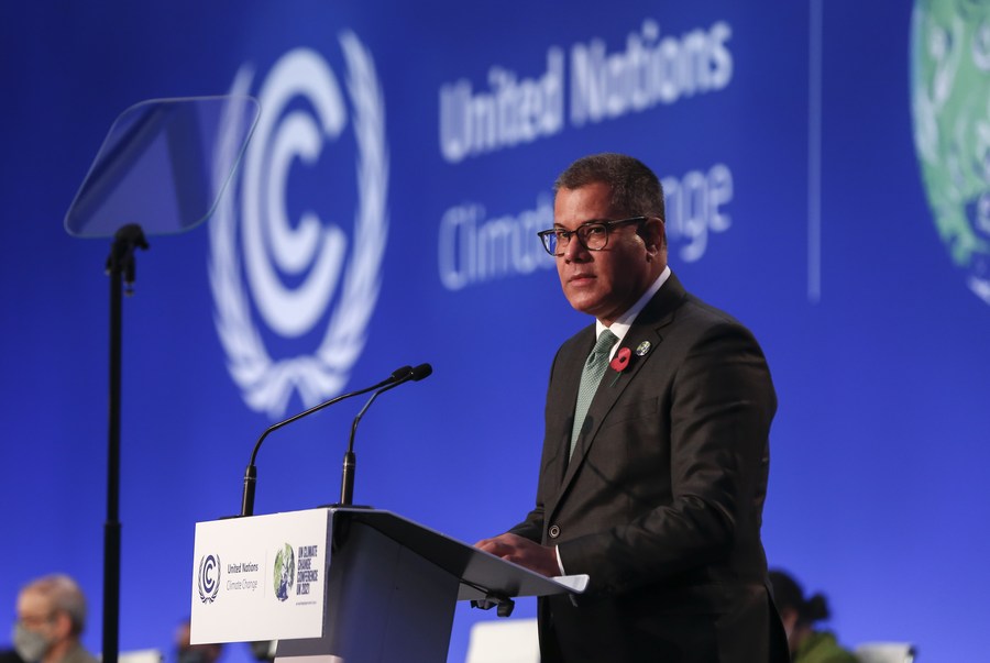 COP26 President Alok Sharma addresses the opening ceremony for COP26 in Glasgow, Scotland, the United Kingdom on Oct. 31, 2021. (Xinhua/Han Yan)