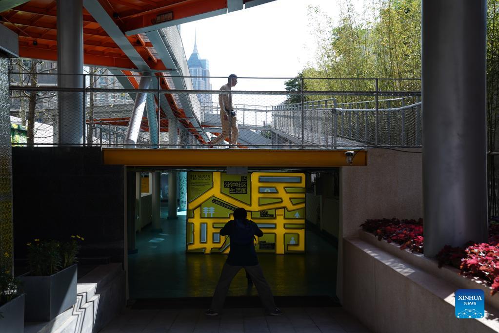 Photo taken on Oct. 31, 2021 shows a view of the Baixi Park in Putuo District of Shanghai, east China. Transformed from a market built on an old railway branch line, the Baixi Park is now a city park which provides citizens with space for exercise and entertainment. (Xinhua/Ding Ting)
