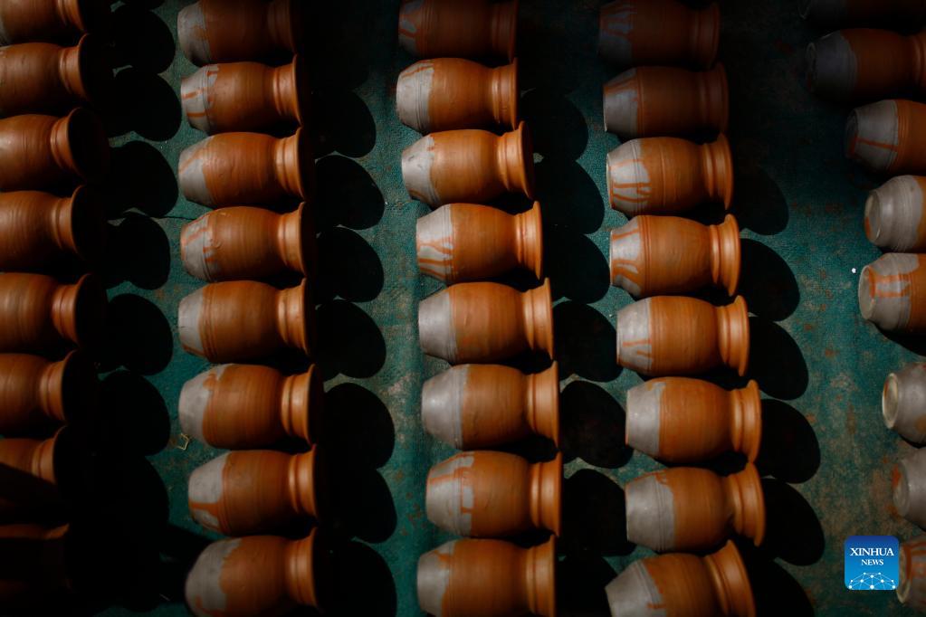 Clay pots for "Tihar", a Hindu festival, are seen at Pottery Square in Bhaktapur, Nepal on Oct. 31, 2021. (Xinhua/Sulav Shrestha)