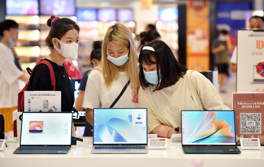 Customers choose products at a duty-free shopping mall in Haikou, south China's Hainan Province, July 2, 2021.(Xinhua/Guo Cheng)