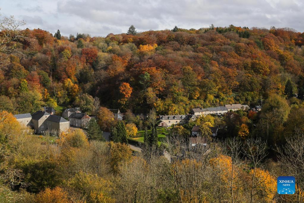 Photo taken on Oct. 31, 2021 shows an autumn scenery in Houyet, Walloon Region, Belgium. (Xinhua/Zheng Huansong)