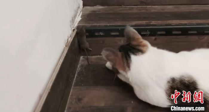 The cat, nicknamed Ron, works as a "detective" in the cafe in Shanghai’s Xinhua Road. Its job is to catch rats in the cafe.