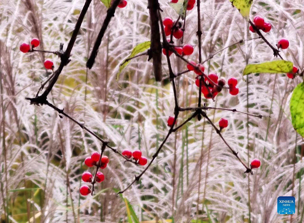 Photo taken on Nov. 2, 2021 shows the autumn scenery at Yuyuantan Park in Beijing, capital of China. (Xinhua/Luo Xiaoguang)