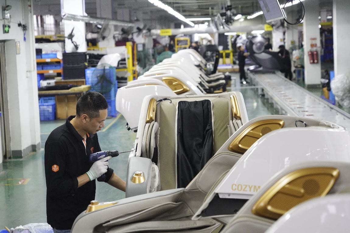 Photo taken on May 19, 2021 shows workers of a healthcare product manufacturer based in Wenzhou, east China’s Zhejiang province, are busy producing massage equipment to be exported to countries along the routes of the Belt and Road Initiative. (People’s Daily Online/Su Qiaojiang/)