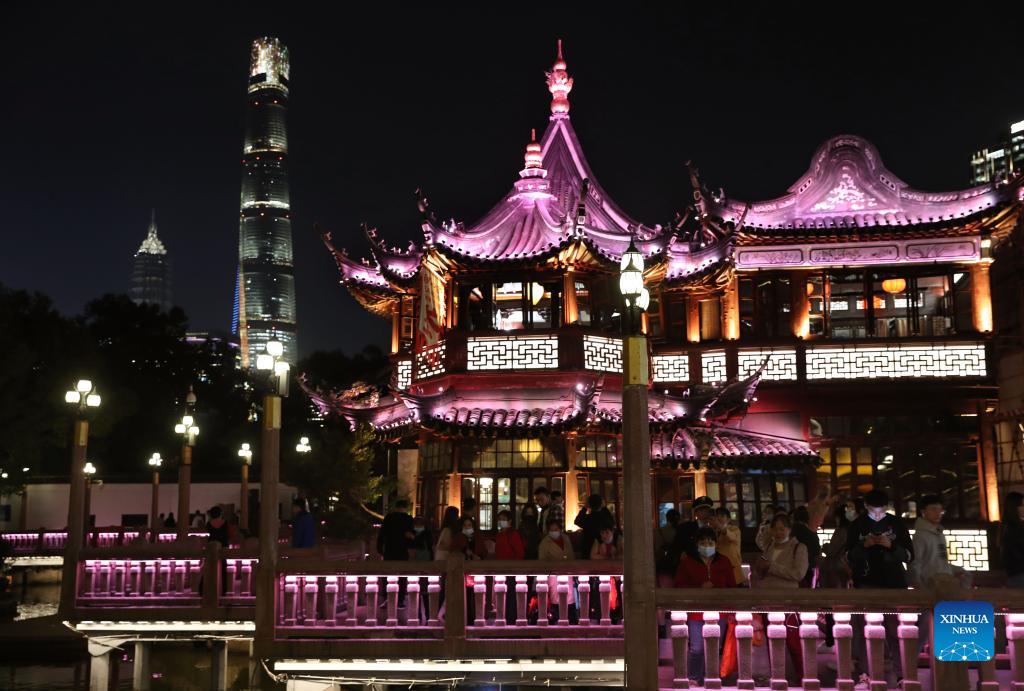 Photo taken on Nov. 3, 2021 shows the Jiuqu Bridge at Yuyuan Garden in east China's Shanghai. The 4th China International Import Expo (CIIE) is scheduled for Shanghai from Nov. 5 to 10. (Xinhua/Liu Ying)