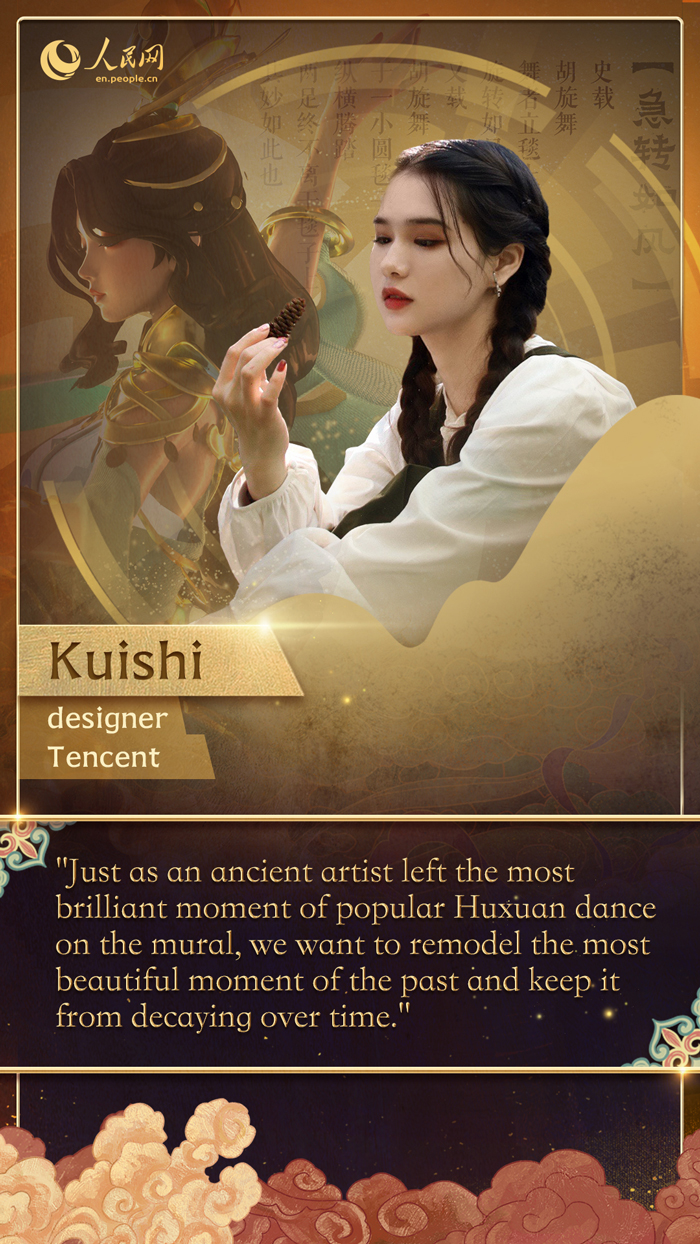 The new skin became a hit in the game industry. Kuishi and her colleagues successfully helped this age-old performance stage a comeback. "Just like the ancient artist left the most brilliant moment of popular Huxuan dance on the mural, we want to remodel the most beautiful moment of the past and keep it from decaying over time," said Kuishi.