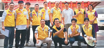 Photo shows Mohanad Shalabi (4th from the right, back) and his two sons (2nd from the right, front and 2nd from the right, back) posing for a group photo after participating in a public welfare activity. (Photo courtesy of the interviewee)