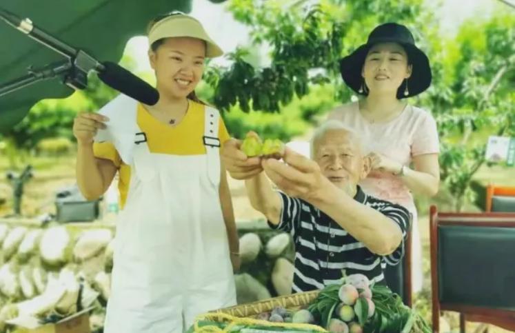 Grandpa Qi promotes local agricultural products. (Photo/Xinhua Daily Telegraph)