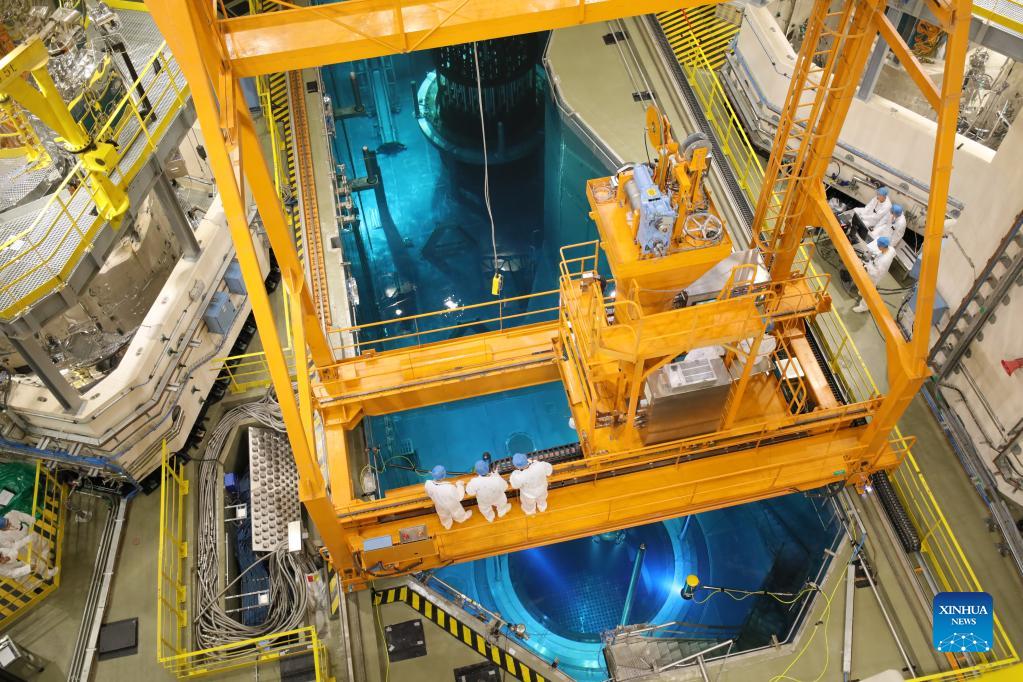 Photo taken on Nov. 6, 2021 shows the fuel loading at No. 6 nuclear power unit in the city of Fuqing, southeast China's Fujian Province. Fuel loading has started at China's second nuclear power unit using Hualong One technology, a domestically developed third-generation reactor design, after the first one entered commercial operations earlier this year. The loading started on Saturday at the No. 6 nuclear power unit in the city of Fuqing, in east China's Fujian Province, bringing the unit one step closer to operation, according to the China National Nuclear Corporation (CNNC). (Xinhua)