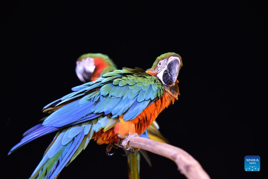 Scarlet macaws are seen during the Riyadh Safari in Riyadh, Saudi Arabia, Nov. 7, 2021. As part of Riyadh season 2021, the Riyadh Safari has opened to public, attracting thousands of people to spend their time with animals. (Xinhua/Wang Haizhou)