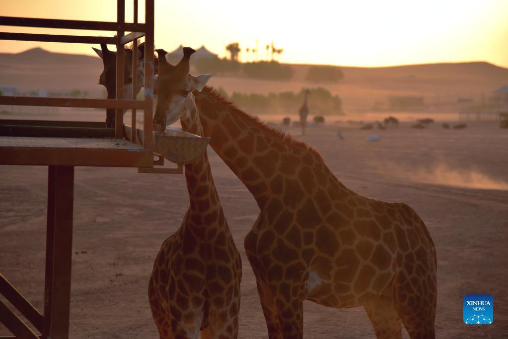 Giraffes are seen during the Riyadh Safari in Riyadh, Saudi Arabia, Nov. 7, 2021. As part of Riyadh season 2021, the Riyadh Safari has opened to public, attracting thousands of people to spend their time with animals. (Xinhua/Wang Haizhou)