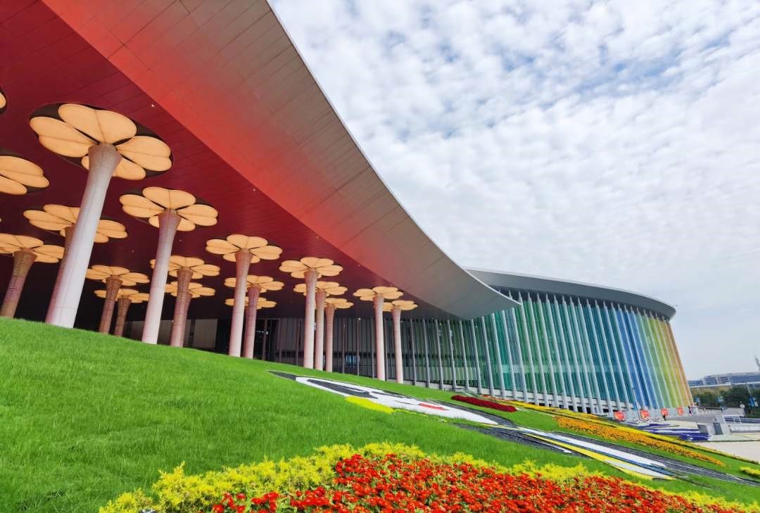 Photo shows the south square of the National Exhibition and Convention Center (Shanghai), a main venue of the 4th China International Import Expo. (People’s Daily/Liu Hui)