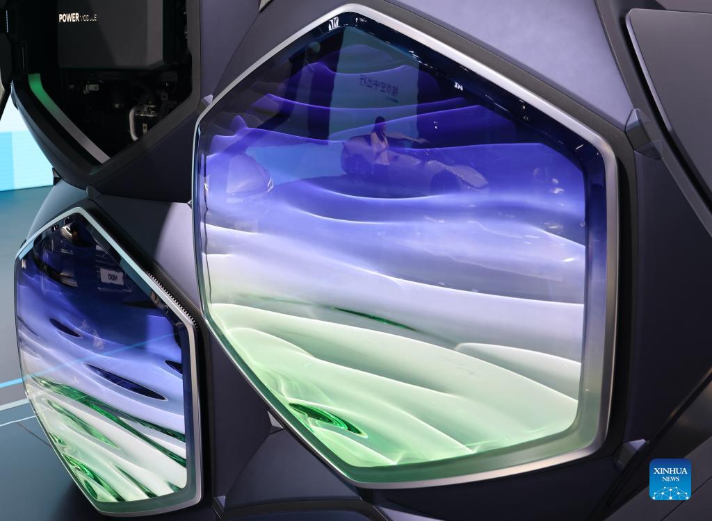 Photo taken on Nov. 7, 2021 shows the hydrogen fuel power modules displayed at the Automobile Exhibition Area of the 4th China International Import Expo (CIIE) in east China's Shanghai. (Xinhua/Hou Dongtao)