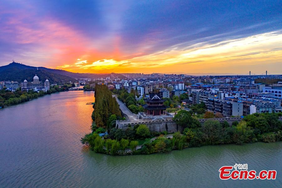 Photo shows the mysterious sunset scenery at the ancient city of Xiangyang, Hubei Province, Nov. 7, 2021. (Photo/Yang Dong)