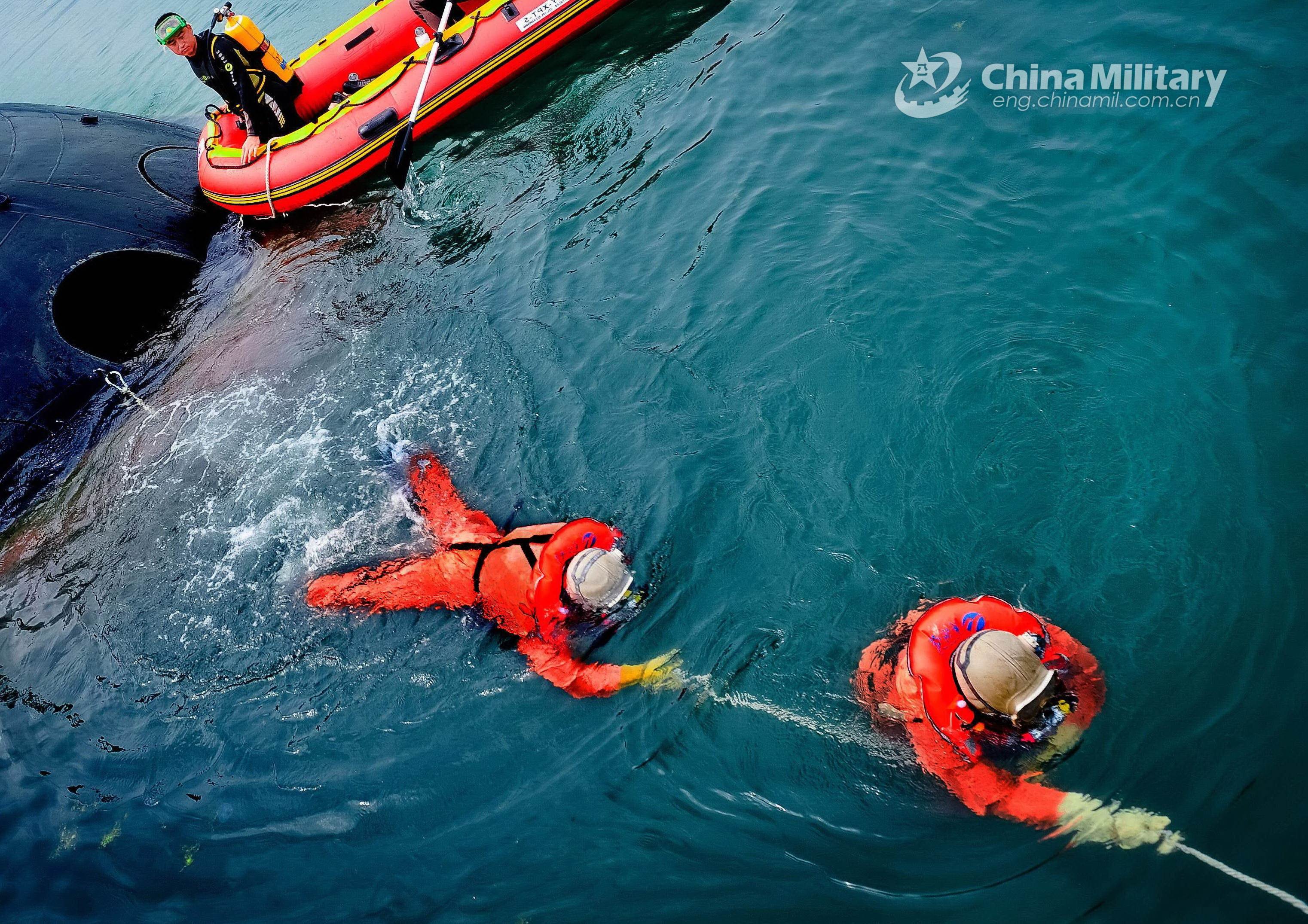 Sailors assigned to a naval base under the PLA Northern Theater Command participate in a first aid and escape training exercise on October 11, 2021. (eng.chinamil.com.cn/Photo by Wang Qing)