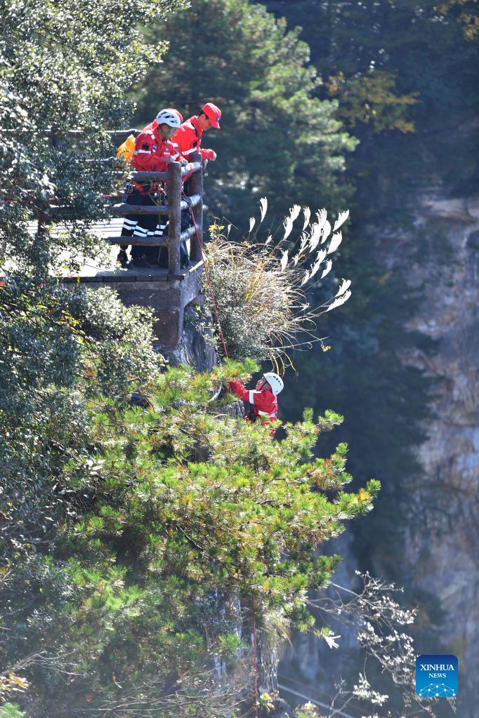 Emergency rescue team collects litters from precipitous cliffs in Wulingyuan, C China