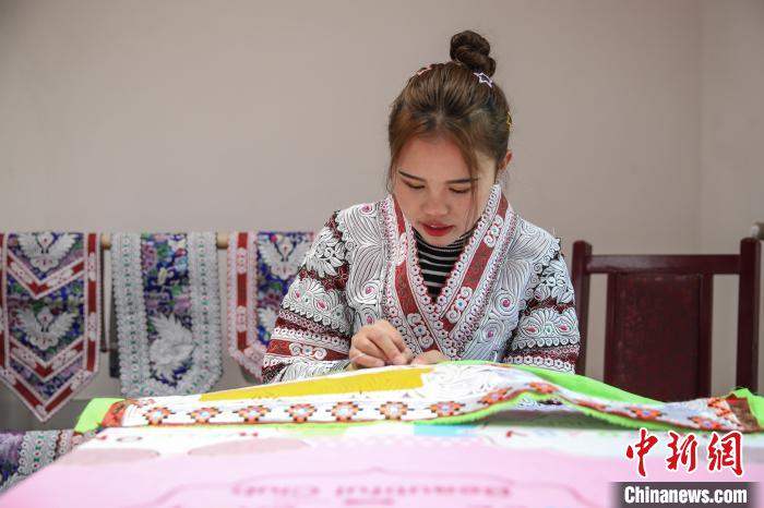 Villager Yang Wenli, born in the 1990s, now promotes embroidery works and traditional costumes of the Miao ethnic group online at an embroidery workshop. Yang said that the workshop sold nearly 70 percent of all its embroidered products through live-streaming sessions.
